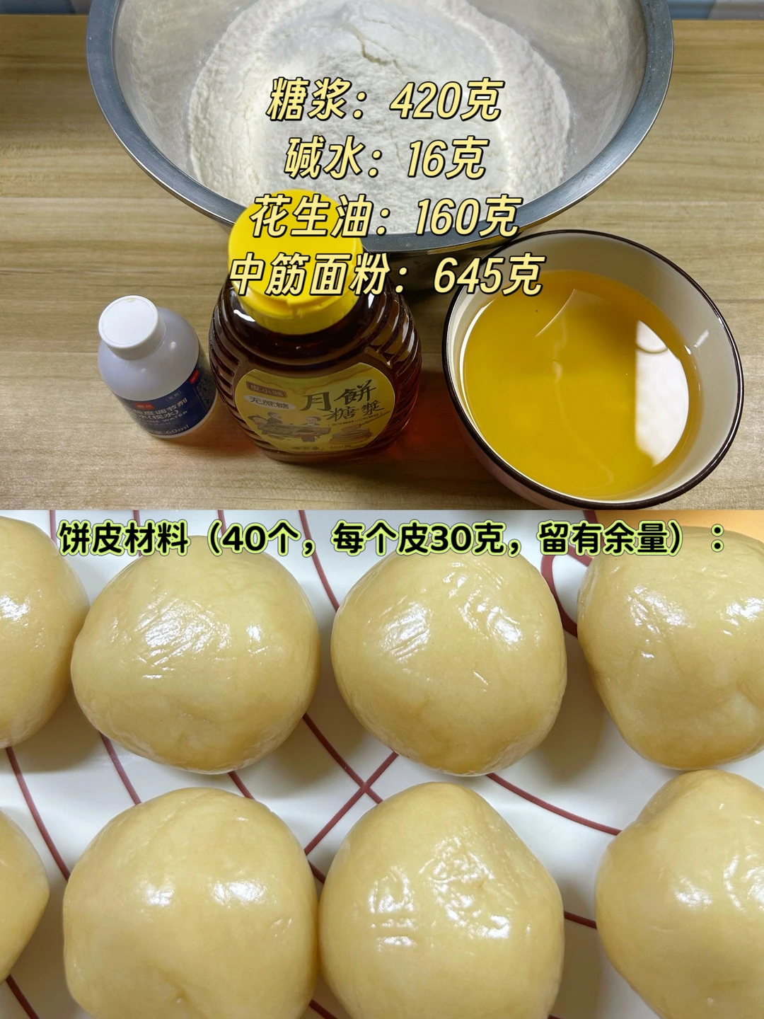 • 粘合料:玉米糖浆80g、花生油80g、食盐10g、莲蓉馅500g(中和甜度超关键)