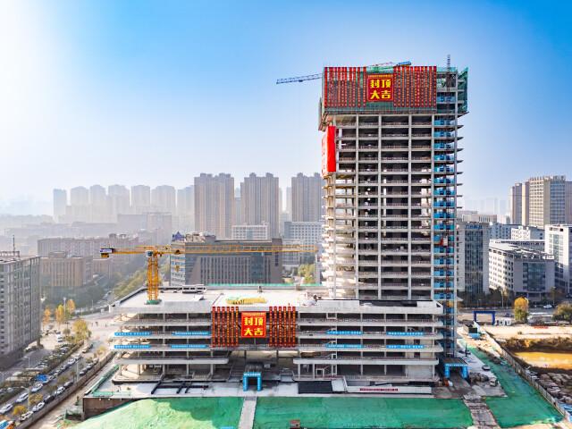 5层裙楼和23层塔楼的骨架巍然耸立,塔吊的长臂在空中划出忙碌的弧线。运输车辆的引擎声低沉,金属构件的碰撞声清脆,交织成一曲铿锵有力的“新年奋进曲”。