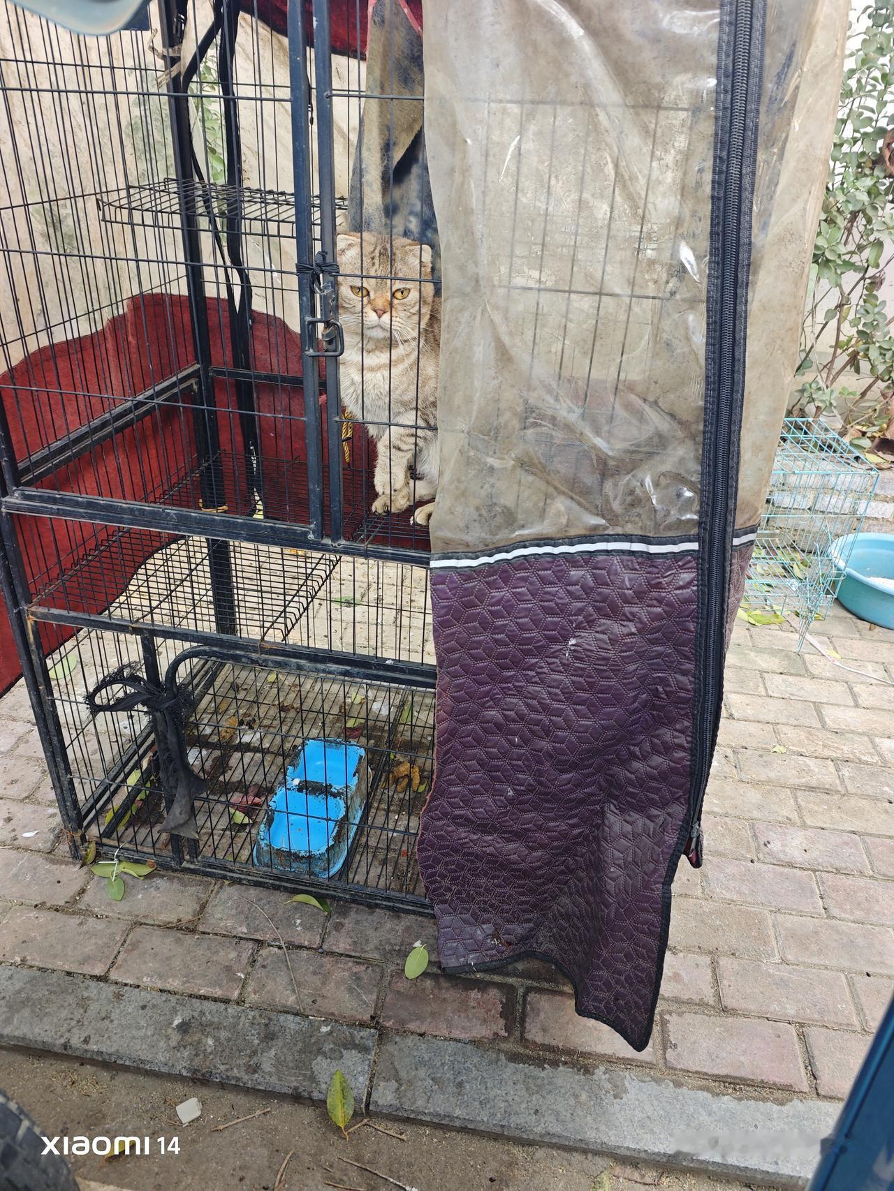 。 只是可惜这么一只小可爱,却被它的主人关在有二层的笼子里。你若是召唤它,它会大口:喵~喵~的热烈回应你。 它唯一的活动范围就是在这两层的笼子里上下攀爬,时不时的用渴望的眼神注视着铁窗外的世界 。 隆冬时节,冷冰冰的笼子放置在金桂巷口靠近墙角的旮旯里。好在这笼子上方有废弃不用的电动自行车挡风被给盖住,多少能够挡住一些冬季的严寒。 猫本是热带非洲的本土生物,在唐朝期间才传入我国。猫喜热怕冷在这温带大陆性气候的冬季里,难免是不适应的。折耳虎斑猫 人来人往,车流不息的小窄巷口里,有谁会注意到它呢。
