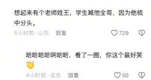 想起来有个老师姓王,学生喊他全哥,因为他梳中分头。