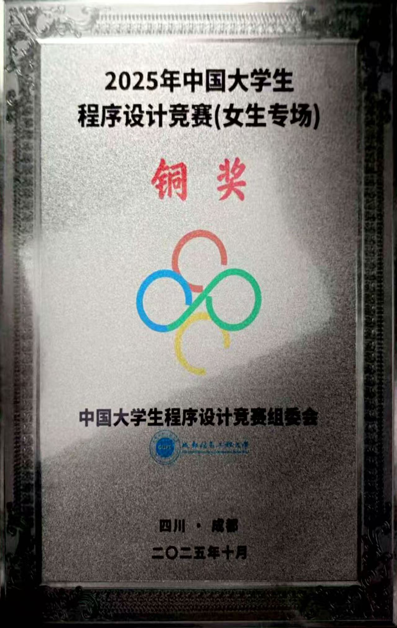近日,备受关注的CCPC中国大学生程序设计竞赛女生专场站赛事圆满落幕。来自重庆城市科技学院的“胭脂沫”队伍凭借扎实的专业功底、出色的团队协作与稳定的临场发挥,成功斩获铜牌,为学校赢得了荣誉,也在中国高校舞台上展现了重庆城市科技学院学子的卓越风采。