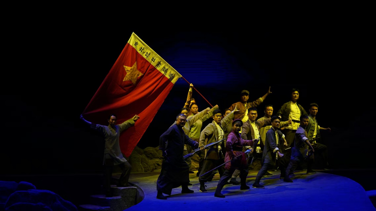 现代评剧《路北游击队》是以评剧为载体诠释革命记忆的一次生动的艺术实践,更是宁城县乌兰牧骑延续六十载红色创作谱系的全新探索。作为草原上的“红色文艺轻骑兵”,宁城县乌兰牧骑坚持传统文化创造性转化,创新性发展。该剧中,红色精神跨越了地域与民族的边界,中华民族共同体意识也在情感共鸣中愈发深厚,为各民族像石榴籽一样紧紧抱在一起,提供了坚实的精神支撑。唱腔既坚守评剧“以唱传情”的核心特质,又针对性地进行“轻骑兵式”简化与适配:唱腔板式不求繁复多变,唯求情感鲜明真挚;唱词语言摒弃华丽雕琢,力求通俗晓畅、贴近生活。既保留评剧精髓,又契合乌兰牧骑“喜闻乐见、接地气”的演出特点,让红色情感借由唱腔直入人心。