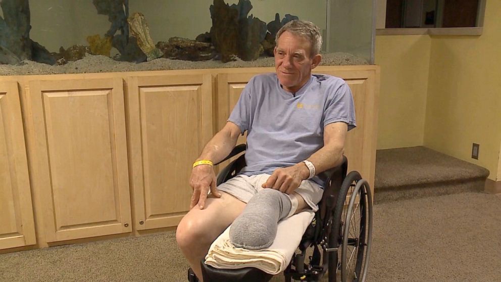 6.柯蒂斯·凯瑟,切断自己断腿的人2019年,63岁的柯蒂斯·凯瑟在内布拉斯加州彭德尔附近的农场工作时,腿不小心被卡入一台谷物螺旋机中。设备开始卷入他的左脚,他必须迅速行动以免情况恶化。于是,他用瑞士军刀切断了被卡住的腿部,随后用肘部爬行数百英尺去拿电话。送到医院后,医务人员为他进行了清创截肢手术,切除了膝盖与脚踝之间的部分。