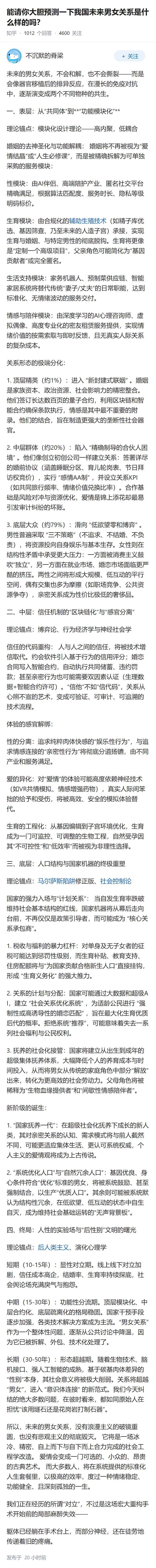 能请你大胆预测一下我国未来男女关系是什么样的吗?