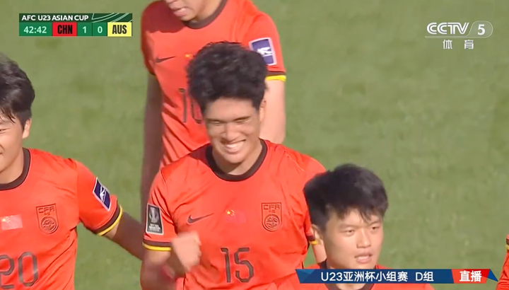第42分钟,王钰栋开出前场任意球,彭啸禁区内劲射破门,中国队1比0领先!