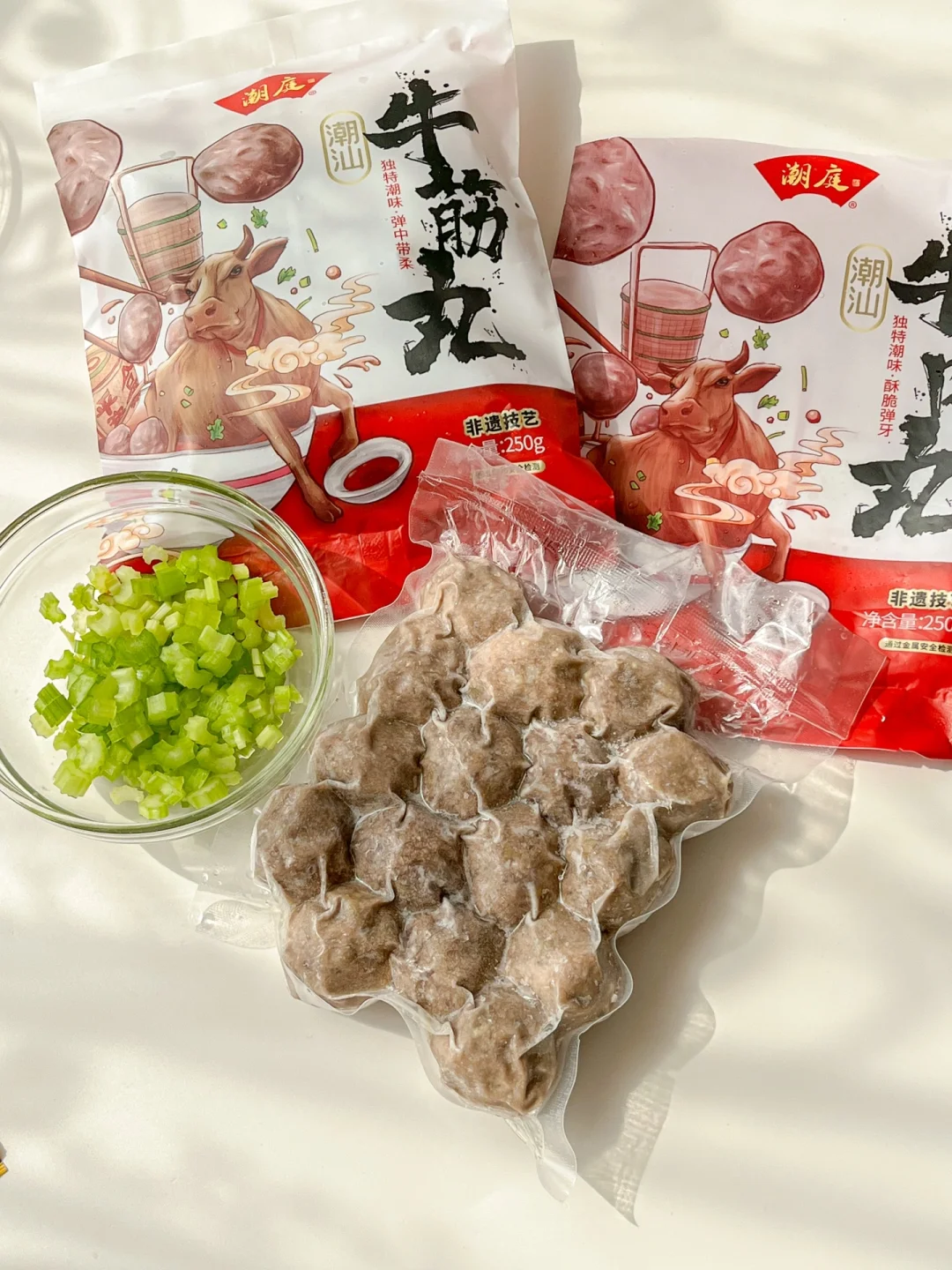 我冰箱里经常会囤牛肉丸,留着打火锅或煮汤。今天用的丸子是在李老头直播间买的潮庭牛肉丸,品质很好,吃着也蛮正宗~潮庭是18年老品牌了,他家牛肉丸和牛筋丸用的都是当天新鲜牛肉生产的,用料放心,所以肉质紧实、QQ的很有弹性。