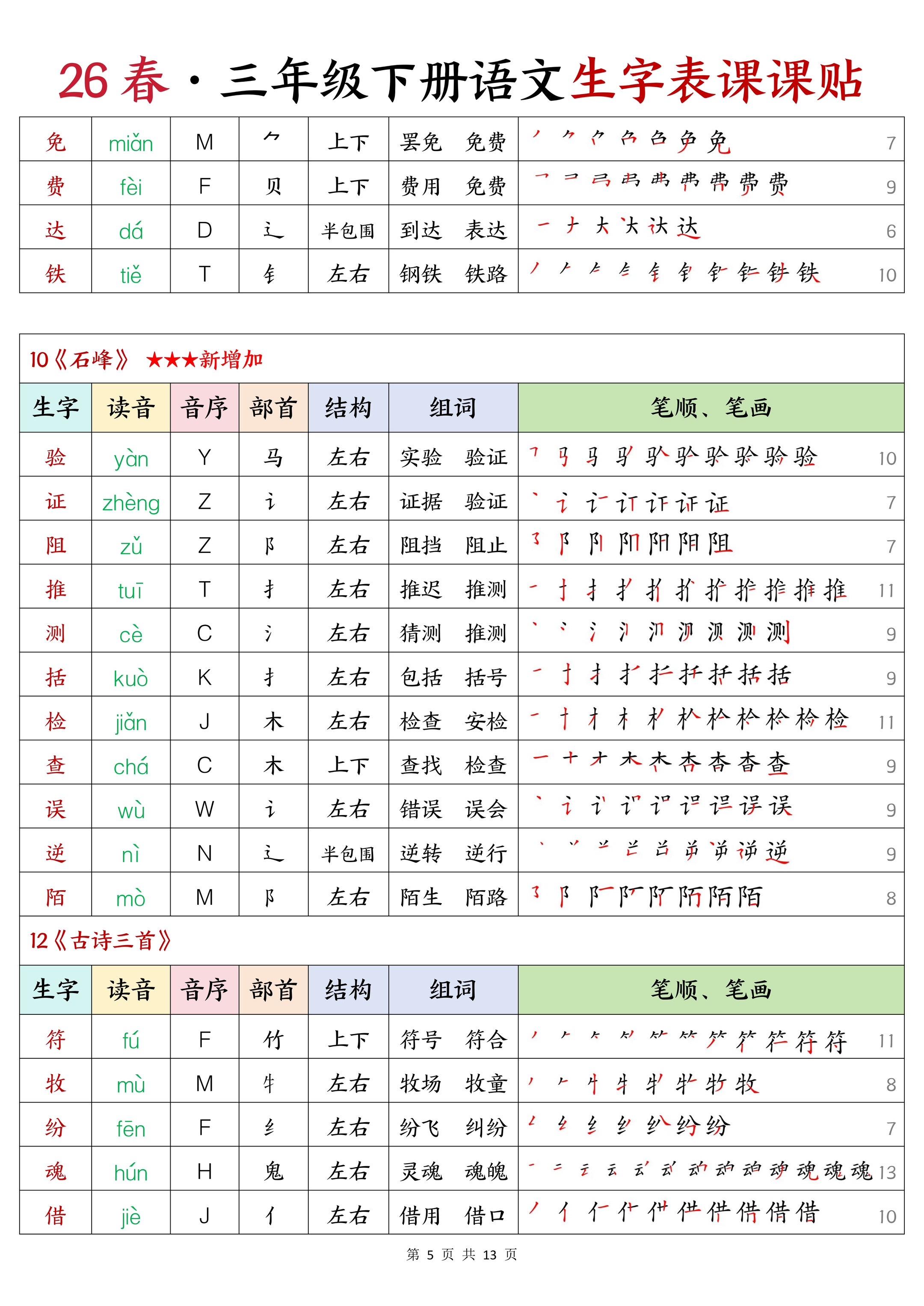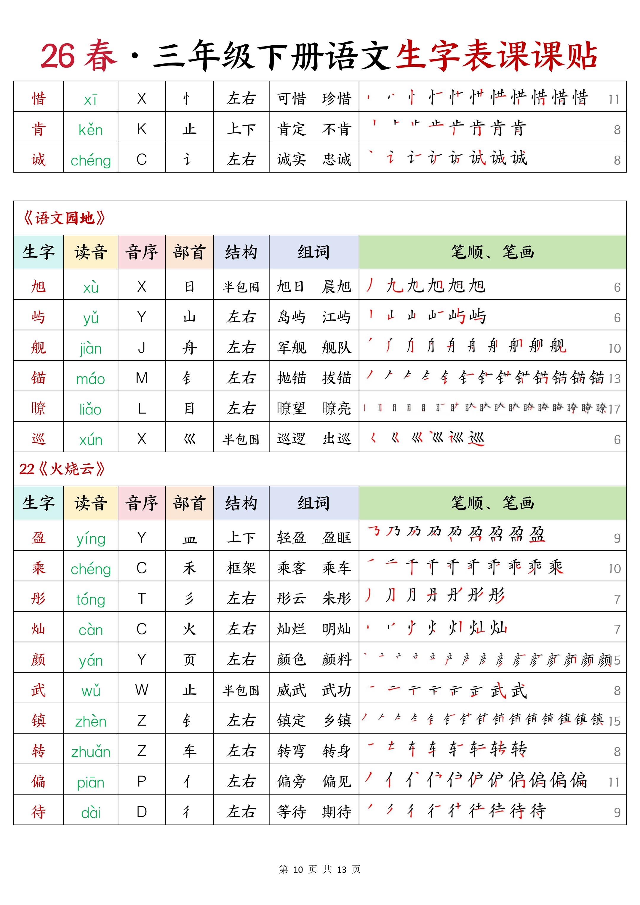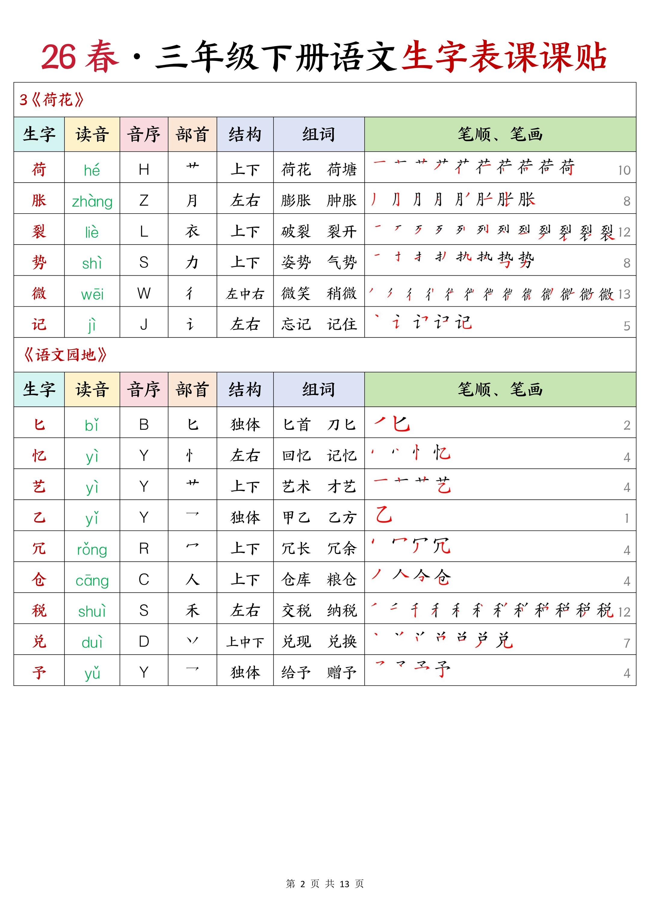 2026年春小学三年级语文下册生字帖课贴。生字词 注音,笔画。写作干货 永春县最便宜打印店 八方文印店,有需要可以自行保存打印