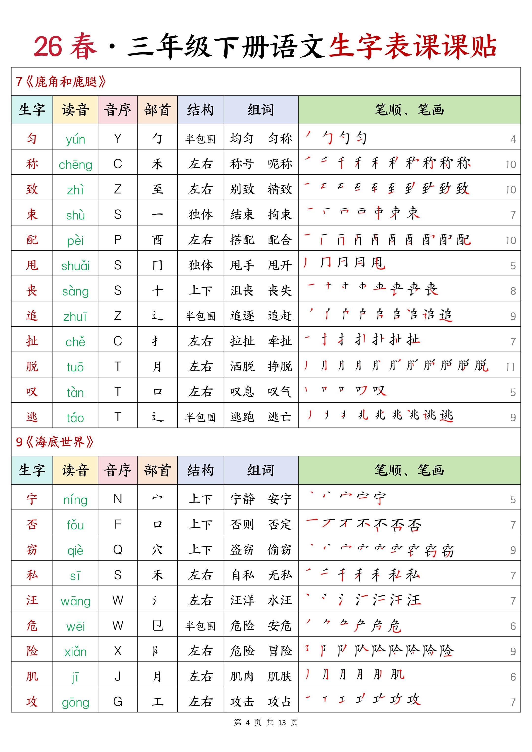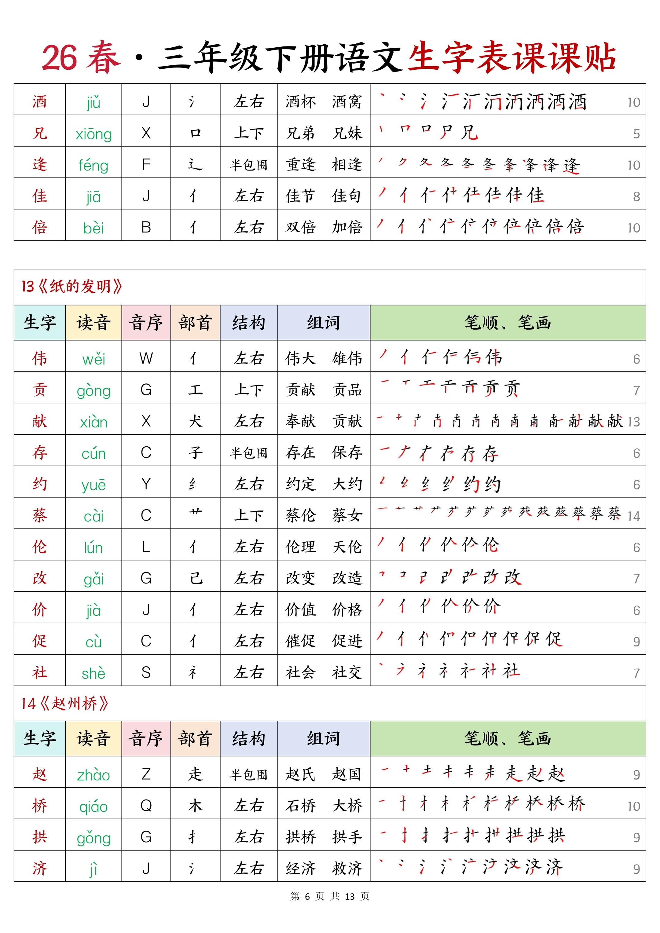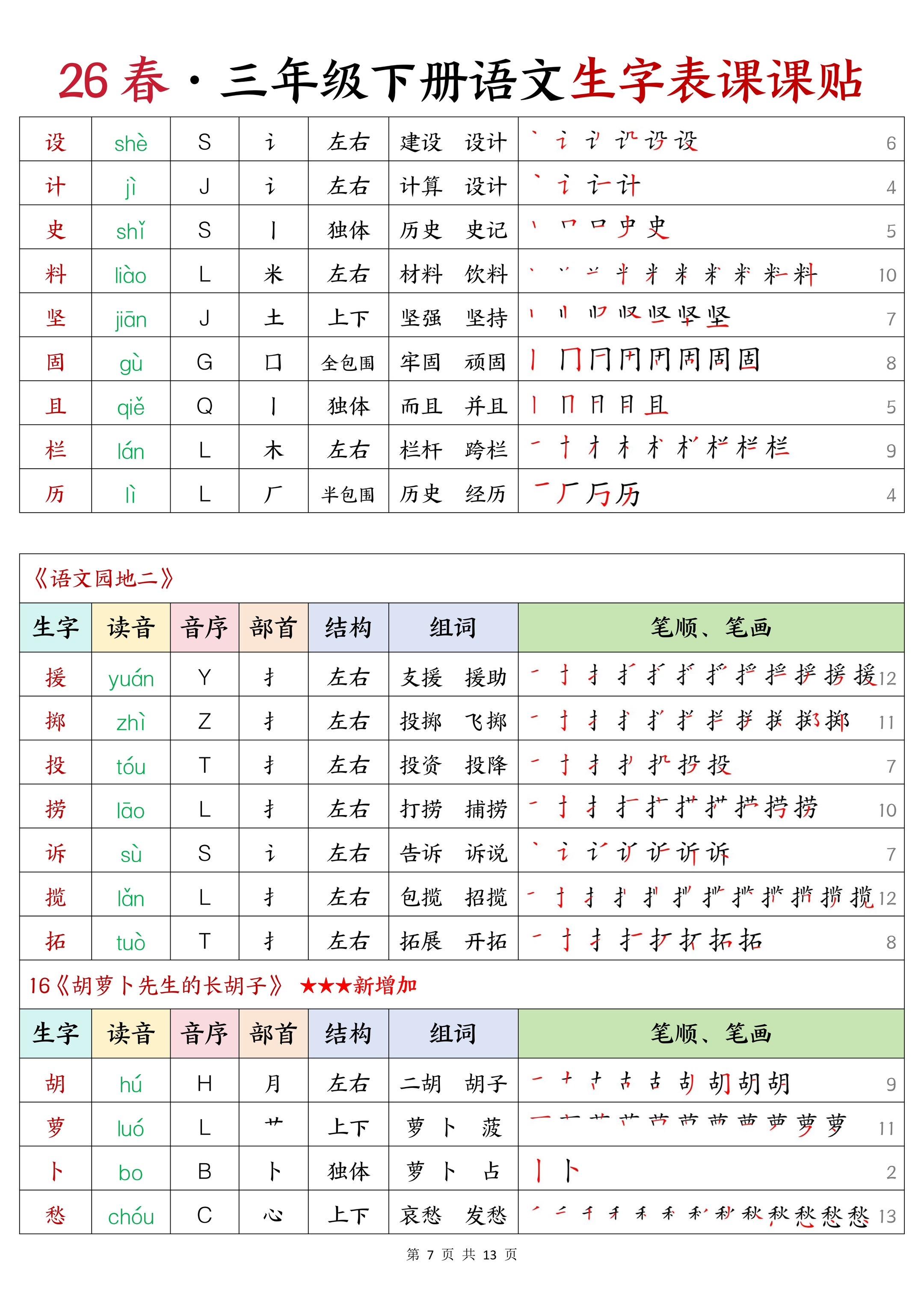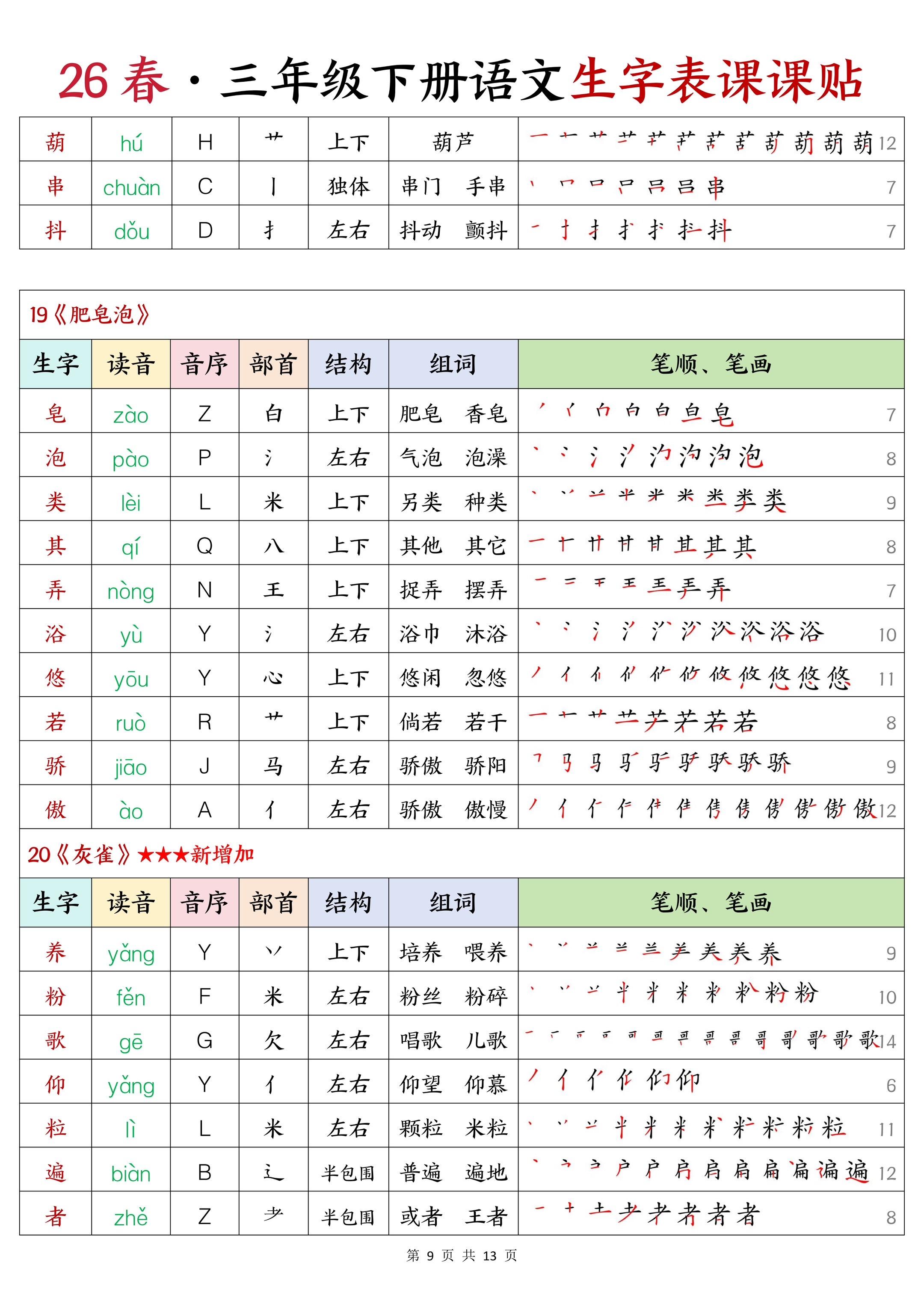 2026年春小学三年级语文下册生字帖课贴。生字词 注音,笔画。写作干货 永春县最便宜打印店 八方文印店,有需要可以自行保存打印