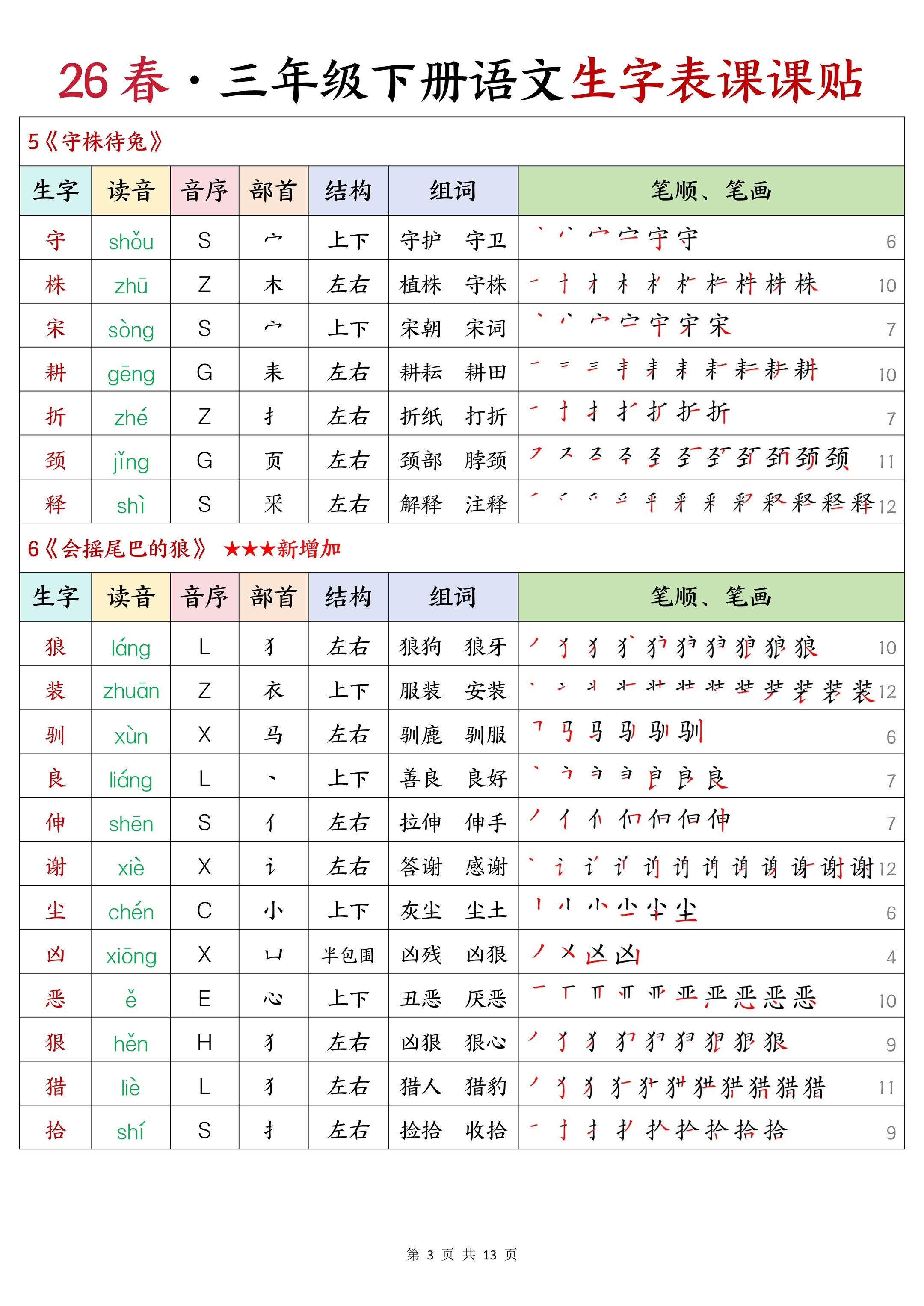 2026年春小学三年级语文下册生字帖课贴。 注音,笔画。 八方文印店...