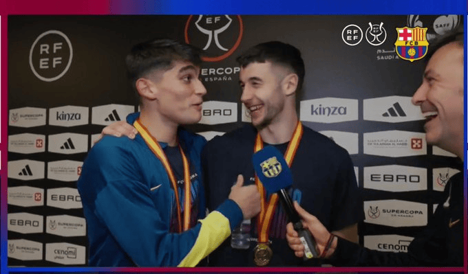 所以我们正在让巴萨球迷享受这一切。你看,我们这里有奖牌,这是“超级冠军”的奖牌,这是你在巴萨赢得的第一个冠军,我相信这绝不会是最后一个。