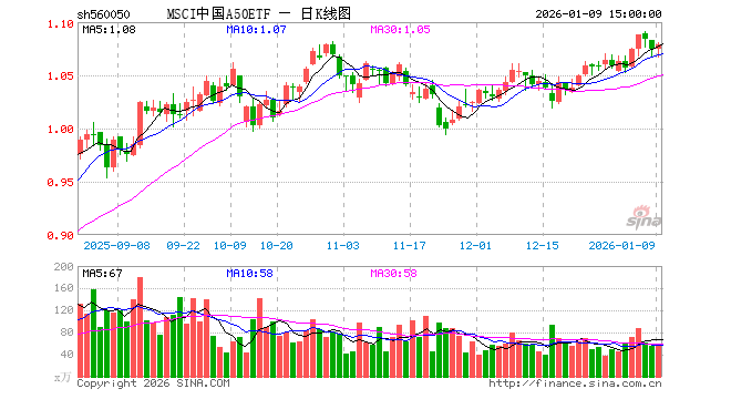 1月9日,MSCI中国A50ETF(560050)涨0.47%,成交额6289.35万元。当日份额减少750.00万份,最新份额为38.12亿份,近20个交易日份额减少6500.00万份。最新资产净值计算值为41.12亿元。