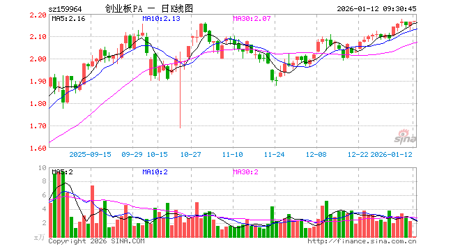 1月12日,创业板ETF平安(159964)开盘涨0.00%,报2.165元。创业板ETF平安(159964)重仓股方面,宁德时代开盘跌0.33%,中际旭创跌2.26%,东方财富跌0.29%,新易盛跌3.07%,阳光电源跌2.23%,胜宏科技跌2.00%,汇川技术涨1.07%,迈瑞医疗涨0.53%,亿纬锂能跌1.07%,温氏股份涨0.00%。