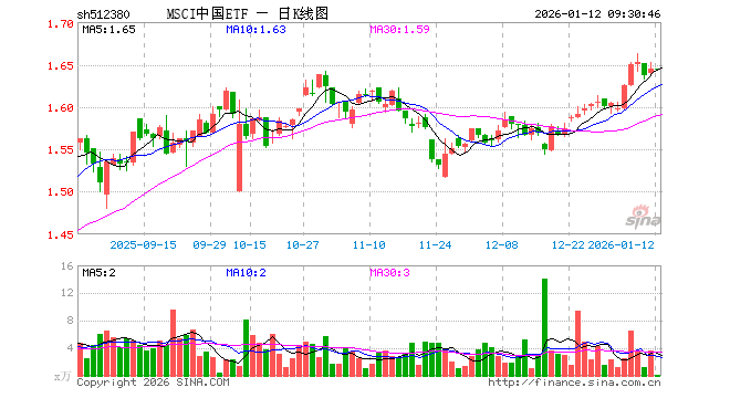1月12日,MSCI中国ETF(512380)开盘涨0.00%,报1.645元。MSCI中国ETF(512380)重仓股方面,贵州茅台开盘涨0.00%,宁德时代跌0.33%,工业富联涨0.02%,招商银行涨0.00%,长江电力涨0.00%,紫金矿业涨2.69%,中国平安跌0.14%,比亚迪涨0.00%,海光信息涨0.00%,农业银行跌0.40%。