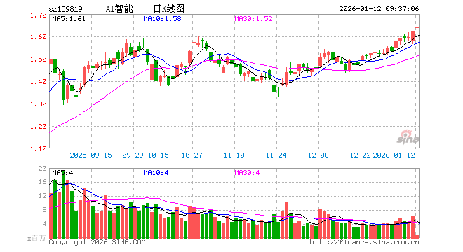 1月12日,人工智能ETF易方达(159819)开盘涨0.68%,报1.635元。人工智能ETF易方达(159819)重仓股方面,新易盛开盘跌3.07%,中际旭创跌2.26%,寒武纪涨2.91%,澜起科技涨1.34%,中科曙光涨0.32%,科大讯飞涨3.42%,豪威集团涨0.01%,海康威视涨0.79%,浪潮信息涨0.67%,金山办公涨2.49%。