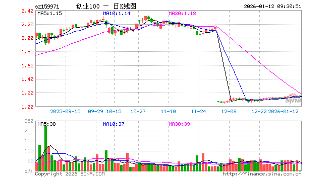 1月12日,创业板ETF富国(159971)开盘涨0.00%,报1.155元。创业板ETF富国(159971)重仓股方面,宁德时代开盘跌0.33%,中际旭创跌2.26%,东方财富跌0.29%,新易盛跌3.07%,阳光电源跌2.23%,胜宏科技跌2.00%,汇川技术涨1.07%,迈瑞医疗涨0.53%,亿纬锂能跌1.07%,温氏股份涨0.00%。