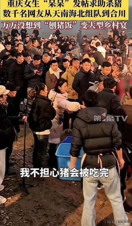 【一头年猪引爆的全民狂欢:刨汤香里,藏着中国人最暖的年味与乡情】 “我家杀年猪缺人帮忙,来者管够热乎刨汤!”2026年初,重庆合川姑娘呆呆的一条无心求助短视频,意外点燃了全网的乡情共鸣。原本只想找几人搭把手的农家小事,最终演变成4000余名网友从五湖四海奔赴的团圆盛宴,让杀年猪吃刨汤这一川渝传统民俗,在寒冬里掀起了一场关于年味与人情味的全民狂欢。 刨汤宴,是刻在川渝乃至西南地区人们记忆里的乡土符号。腊月将至,农家择吉日杀年猪,邻里乡亲主动上门相助,按猪接血、烧水褪毛,分工有序;女人们围在灶台前忙碌,新鲜的猪血、猪杂与萝卜、白菜一同入锅,咕嘟咕嘟煮出最鲜的刨汤,再配上炸酥肉、滑肉、合川肉片、蒜苗回锅肉等硬菜,炊烟袅袅中满是肉香与欢笑。这不仅是一场丰收的庆祝,更藏着乡土社会的互助密码——主人家以第一刀好肉答谢亲友,还要特意留着猪下膀孝敬老丈人,一碗热汤、一盘腊肉,维系着最纯粹的人情往来。对许多远离故土的人而言,刨汤的香气,就是乡愁的味道,是童年里最热闹、最温暖的年节记忆。 而呆呆的求助,恰好戳中了当代人对这份纯粹的向往。视频发布后不到24小时,点赞破10万,6个500人交流群瞬间满员,她的粉丝从不足500暴涨至20万。渝、川、黔、粤等多地网友驱车赶来,有的带着酒水蔬菜,有的直接送来一头肥猪,还有人主动帮忙烧火、切菜、维持秩序。原本呆呆家仅准备的2头猪,最终在文旅部门和热心网友的支援下增至5头,才勉强撑起这场千人流水席。田埂上、院子里,大家或蹲或坐,端着碗吃得津津有味;夜晚的烟花秀、打铁花、舞龙表演更是将氛围推向高潮,直播间10万人在线围观,满屏都是“这才是过年该有的样子”。 这场意外的流量狂欢,更离不开合川文旅的“天花板级救场”。得知消息后,文旅工作人员凌晨两点便扛着物资赶来,调试直播设备、补充食材,还现场向网友派发钓鱼城门票,推介当地特产与旅游路线。原本的农家宴席,顺势升级为“刨猪汤民俗文化祭”,不仅带动合川酒店订单暴涨300%、桃片等特产销量翻倍,更让乡村旅游在寒冬中“热”了起来。事实上,这并非合川首次挖掘刨汤文化的价值,此前便联合广安举办乡村刨汤文化旅游季,通过年猪游街、非遗展示、农产品展销等活动,推动川渝毗邻镇农文旅融合发展,让传统民俗成为乡村振兴的新引擎。如今,借着呆呆带来的流量东风,合川更计划将“云端杀猪节”列为年度特色活动,让刨汤文化成为兼具民俗味与竞技感的文旅IP。 从一头年猪到一场全民盛宴,从农家小院到网红打卡地,这场刨汤引发的狂欢,本质上是当代人对久违年味的集体追寻。当城市生活的快节奏让人际交往渐趋疏离,当精致的年夜饭少了些许烟火气,杀年猪时的邻里互助、流水席上的坦诚欢笑、民俗里的文化传承,便成了最珍贵的精神慰藉。网友们奔赴的不是一顿猪肉宴,而是对简单纯粹生活的向往;合川文旅接住的也不仅是流量,更是对传统文化的活化与传承。 刨汤的香气终将散去,但那份跨越山海的信任、不分你我的热忱、藏在民俗里的乡情,却会久久温暖人心。在这个寒冬里,一碗热乎的刨汤告诉我们:最动人的年味,从来不在山珍海味里,而在人与人之间的真诚相待中;最鲜活的文化,也从来不是博物馆里的陈列,而是能走进生活、连接人心的烟火气。或许这就是传统民俗的力量,无论时代如何变迁,总能在某个瞬间唤醒我们内心深处的柔软,让我们记得,根在哪里,年味就在哪里。