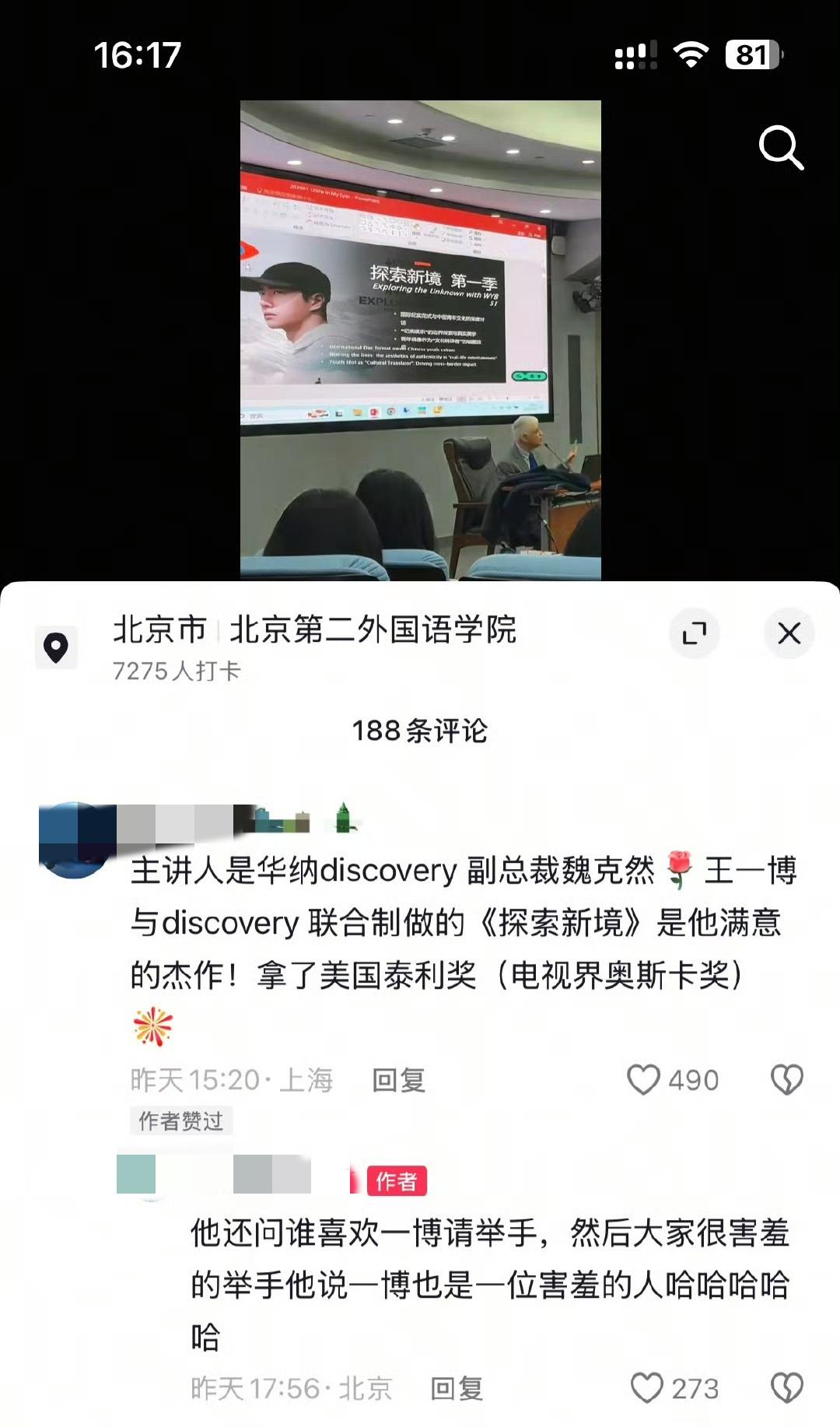真正成功的案例是什么样的?应该就像王一博作为发起人的个人ip户外探险纪实纪录片《探索新境》系列这样吧? 王一博的《探索新境》有多成功?就是华纳discovery副总裁魏克然把它做成成功案例,走哪儿带到哪儿走哪儿讲到哪儿[捂脸],屡次带去各大论坛、学校讲座。 成功的作品就是让人有“拿得出手”的底气[赞]。 哈哈哈,魏克然说“一博也是一位害羞的人”,好像大家都知道呢[灵光一闪]。 王一博