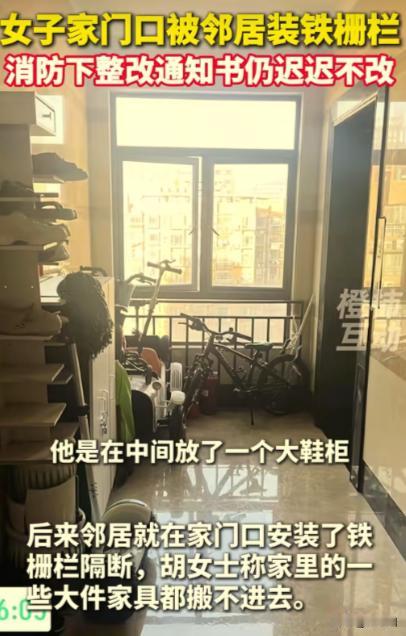 “欺人太甚!”江西南昌,一女子刚买完房子正打算装修,邻居突然在两家中间放了一个大号鞋柜,导致她家大件家具根本搬不进来。起初女子为了和睦,提出换成小一点的鞋柜,结果邻居不但拒绝了女子的提议,更过分的是,直接在女子入户门口装了一扇铁栅栏门!女子再也忍无可忍。 胡女士终于在网上倾诉了自己多年来压抑在心里的苦楚。她说,这几年,她省吃俭用,好不容易买了属于自己的房子,心想总算可以安稳生活了。 谁料到,生活最基本的安宁,却在搬家第一天就被无情打破。她入住的,是一梯两户的小区,原本以为邻里之间还算和睦,没想到迎接她的,却是一场接连不断的“恶意考验”。 搬家那天,胡女士满心欢喜,心想着自己终于可以布置新家。可当搬家公司费力地把大件家具抬到楼道时,却发现根本无法顺利搬进门——因为楼道中间,赫然摆放着一个比人还高的大号鞋柜。 这个鞋柜紧贴两家之间的位置,占据了几乎一半的通道,让搬家公司几次尝试都无功而返。 胡女士心里一紧,连忙敲邻居家的门,温和地说道:“这楼道是两家的公摊面积,能不能换个小一点的鞋柜,好让大家搬东西方便呢?” 起初,她抱着一丝希望,想用和气化解矛盾。可邻居不但没有表示理解,反而冷笑一声,直接拒绝了她的请求。 胡女士愣了愣,还没来得及反驳,就看到邻居接下来的举动,让她彻底愤怒——邻居居然在她的入户门口,安装了一扇铁栅栏门! 从那天起,胡女士几乎每天都要面对一个无法打开的门。铁门上,邻居挂满了杂物、脏拖把,每到夏天,垃圾的味道伴随着热气扑面而来,熏得人几乎作呕。 更让人无法忍受的是,邻居还教着自家孩子,有意无意地朝胡女士家吐口水,胡女士每次开门,都要小心翼翼地避开那些污秽。 胡女士试过无数次沟通。她好言好语地解释,楼道是公共区域,杂物堆放影响安全,也影响邻里关系。 她提醒邻居,公共消防通道必须畅通,否则存在安全隐患。可邻居似乎早就抱定了“我行我素”的心态,不仅不改,反而越来越嚣张。 忍无可忍之下,胡女士拨打了消防部门的电话,投诉了楼道堵塞问题。 消防部门迅速上门检查,确认问题确实严重,随后出具了限期整改通知书,明确要求将楼道杂物清理干净,并拆除堵塞通道的铁栅栏。胡女士本以为,这下至少能有一些改善。 然而,事情并没有像她预想的那样发展。邻居收到通知后,毫无悔意,甚至当面嚣张地表示:“我就不弄,你管不着我。” 胡女士听到这句话时,几乎气得说不出话来。她开始感觉到,自己面对的,已经不仅仅是一个普通的难缠邻居,而是一个明知规则、却故意挑衅的人。 在绝望中,胡女士把自己的遭遇发到了网上,希望引起关注,寻找解决的办法。文章一发出,网友们纷纷评论,表示愤怒与同情。 很快,一条更令人吃惊的消息被揭开——原来这位嚣张邻居,竟然是一名公职人员! 更令人不可思议的是,他在2024年还曾作为志愿者参与小区楼道治理,和胡女士所在的小区一起清理过楼道、整理过公共空间。 这一切让网友们震惊:明明知道自己的行为违规、影响他人,还要公然挑衅,这不仅是任性,更是赤裸裸的嚣张。 网友们纷纷猜测,这或许正是他敢如此肆无忌惮的原因——背后有身份作保障。有人评论:“怪不得这么牛,果然是有点背景的人。” 也有人感叹:“就是明知道错,还故意做错,这心理太可怕了。”胡女士看着评论区一条条留言,心里五味杂陈。 她既感到宽慰,原来自己并不孤单,也有人支持她,也更觉得无奈,面对这样的人,光靠道理和善意,似乎根本无法撼动他的固执。 于是,她决定不再沉默。除了网上倾诉,她还联系了社区居委会,要求介入调解,明确楼道是公共通道,任何个人无权阻碍。 她还拍下了铁栅栏、挂着脏拖把的照片,以及孩子恶作剧的视频,作为证据留存。 她希望,借助法律和规则,让事情回到正轨,让自己和邻居都明白:公共秩序不可侵犯,人人应有基本的尊重与善意。