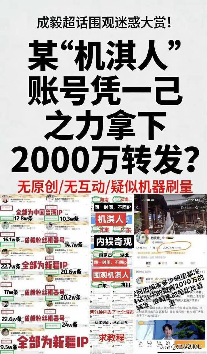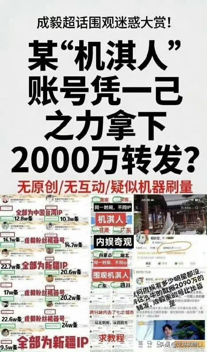 触目惊心的水军,可以一人一年转发几百万上千万博文,可以机器空瓶所有蓝V和营销号的前排。这只是为了做假数据吗?操作一个傀儡假“顶流”吗? 我觉得这种操作的背后一定酝酿了更大的目的,在娱乐圈先练手,成功了,可以copy复制一切,可以操控各种舆论,甚至是政治舆论,细思极恐,很可怕