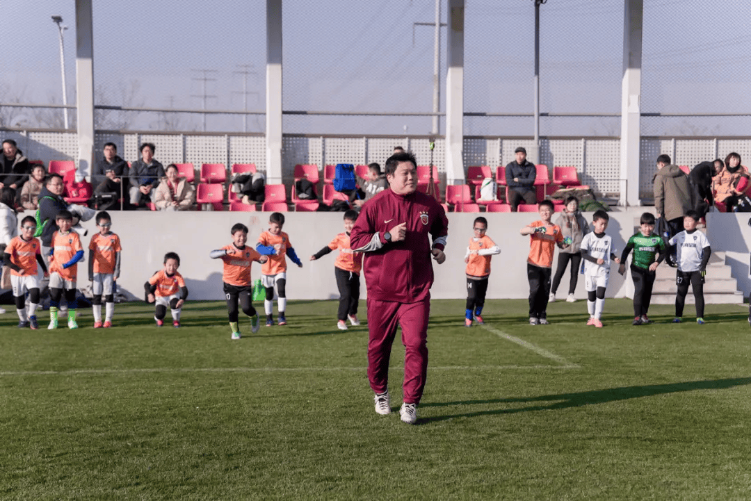 本次活动的最大亮点之一,是海港队球员吕文君、蔡慧康的惊喜现身。他们的到来引发了小队员们的热烈欢呼。两位球员亲切地带领小球员们进行赛前热身,并参与了趣味传球游戏,其专业的指导极大地激发了孩子们对足球运动的兴趣。这一环节不仅拉近了职业足球与社区的距离,也生动展示了俱乐部致力于足球推广的积极形象。