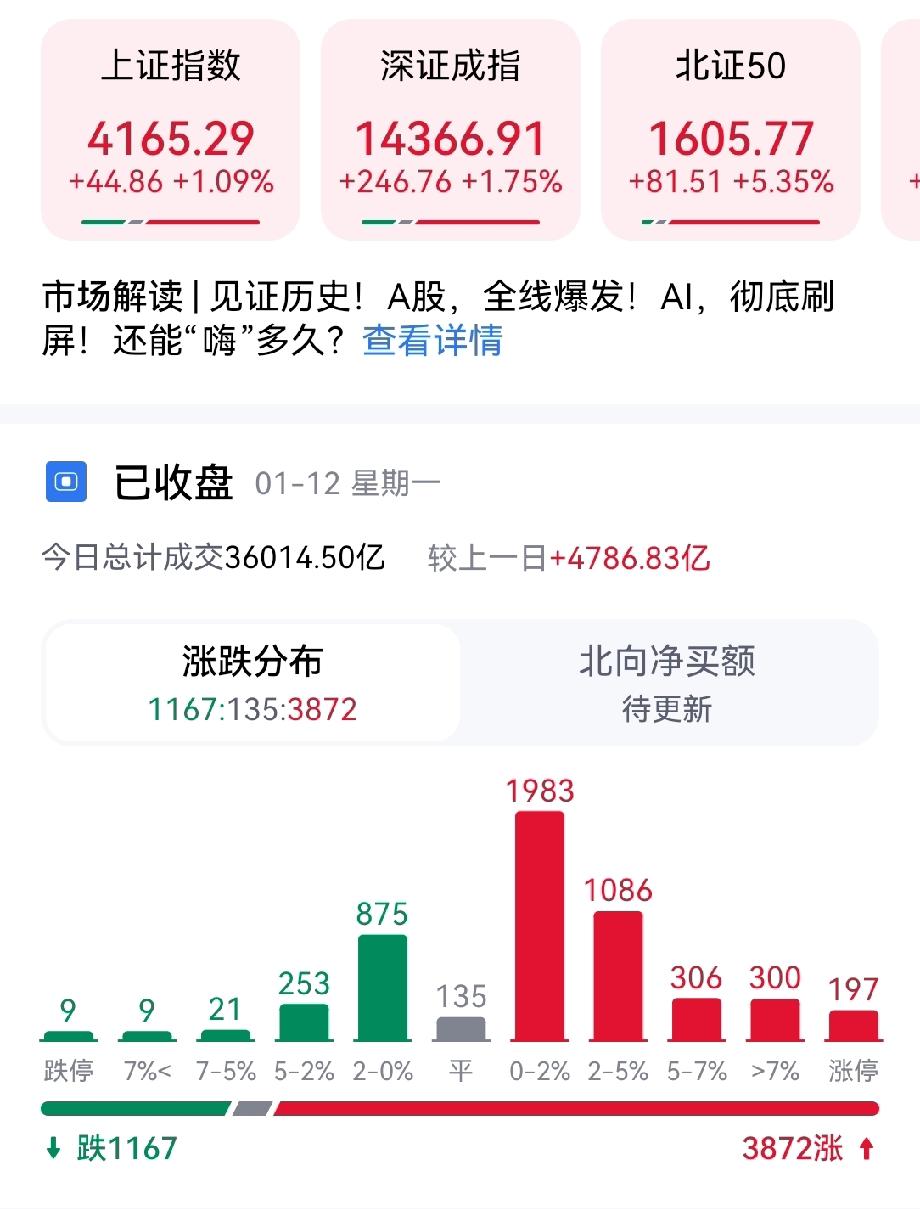 今天两市放量大涨成交额突破3.6万亿元,刷新此前在2024年10月8日创下的34549.33亿元的成交额历史纪录。市场赚钱效果显现,周末的好消息带动下一路高歌猛进,广告营销,软件开,it服务,传媒电商,国防军工等板块大涨,目前大盘资金持续流入,外资继续跟进,未来有望持续大涨,就算有短期的调整也很难改变持续上涨的趋势!