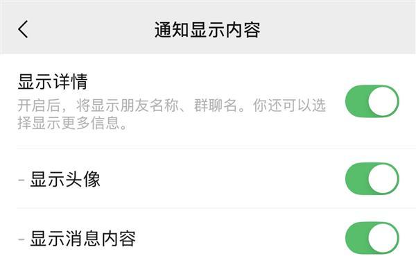需在微信"设置"-"通知"-"通知显示内容"中开启,支持单独设置是否显示头像和消息内容,方便用户隐私控制。