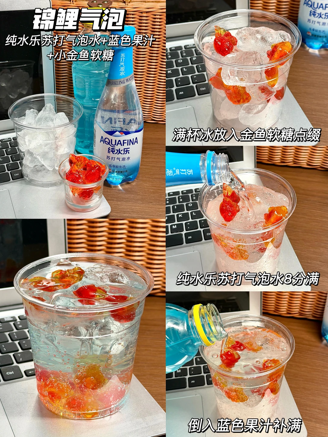 🐠锦鲤气泡:纯水乐苏打气泡水+蓝色果汁+小金鱼软糖