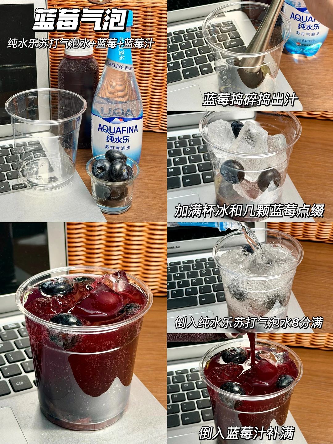 🫐蓝莓气泡:纯水乐苏打气泡水+蓝莓+蓝莓汁