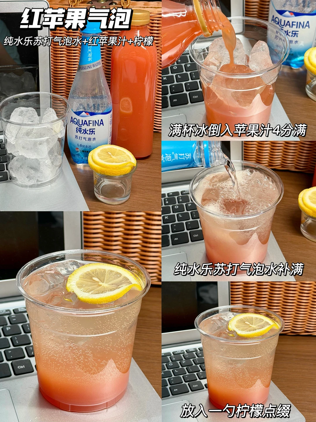 🍎红苹果气泡: 纯水乐苏打气泡水+红苹果汁+柠檬片