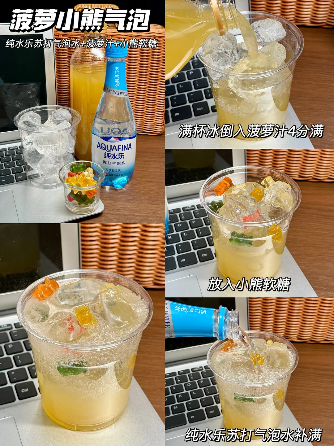 🍍菠萝小熊气泡:纯水乐苏打气泡水+菠萝汁+小熊软糖