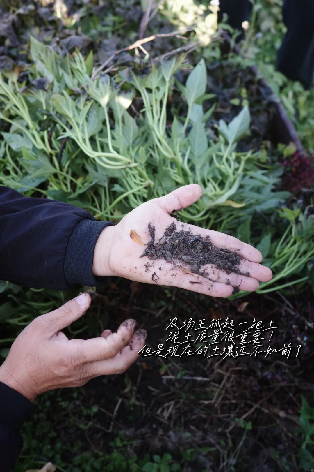 农场主给我们介绍这里种菜的泥土,用的是草饲奶牛的便便,真正做到无抗!