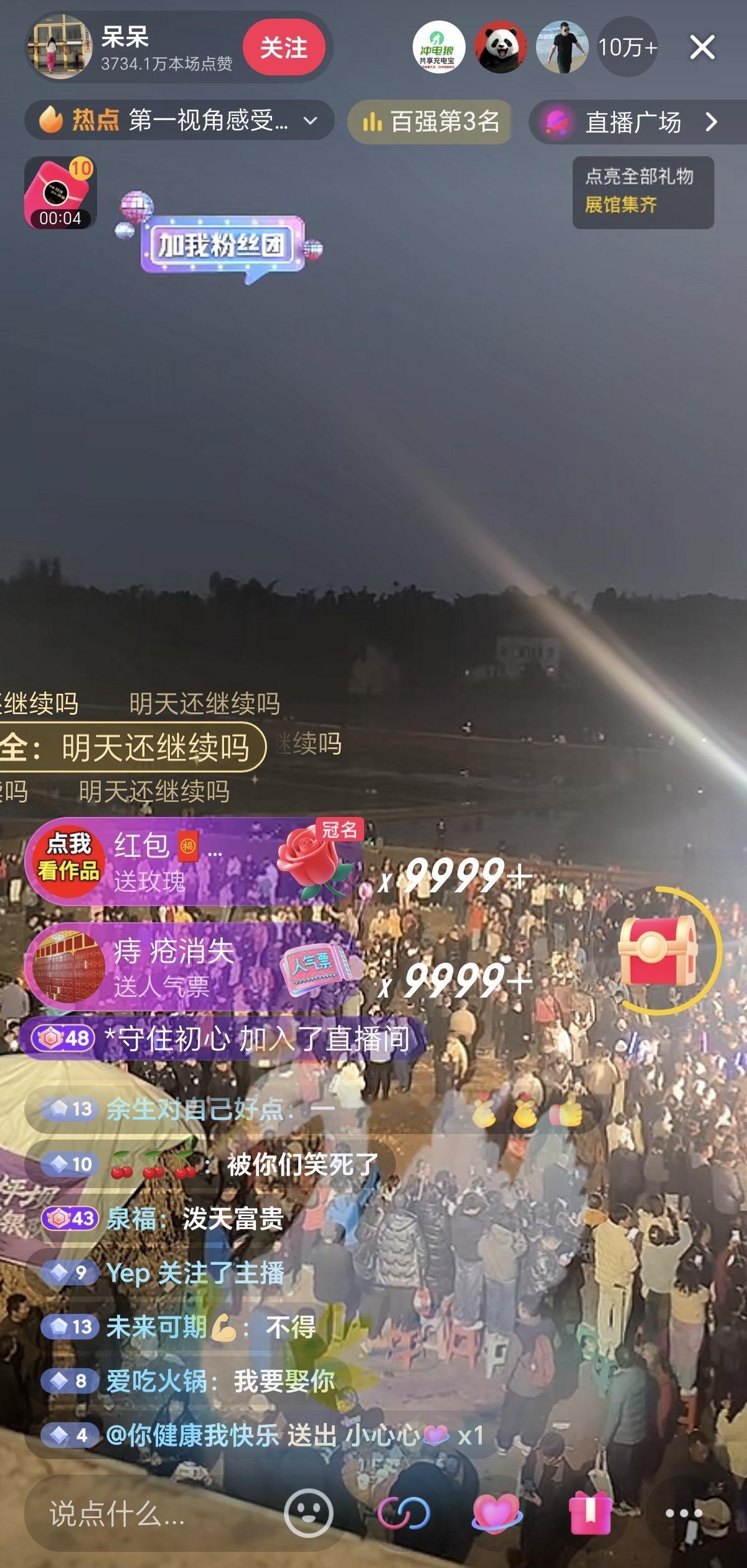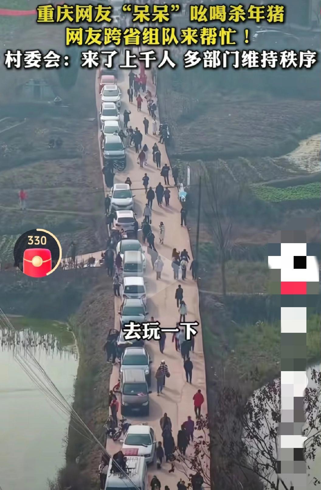 一位网名叫呆呆的姑娘,发帖说家里杀年猪,问有没有人前来帮忙,请他吃刨猪汤。没想到从各地赶来了上千名网友,光流水席就吃了5头猪。 这事还惊动了当地文旅部门和村委会。经过网络曝光后,第二天居然还有很多网友陆续赶来凑热闹。好在有当地多部门联合维持秩序。 根据呆呆今晚直播间显示,广场上确实人潮涌动,好多人赶来凑热闹。而且她的直播间,更是流量巨大,直接霸榜。 有时候,很难想象,随口的一句话,一个文案。没想到会引来这么大的流量,这么大的热度。真的是泼天的流量富贵,传递到了当地,传递到了这位女网友那里。 好在当地多部门联动,以及村委会一起协助,给这位姑娘兜住了底。不然的话,这位姑娘和家人,也无法接待这么多热情的网友。