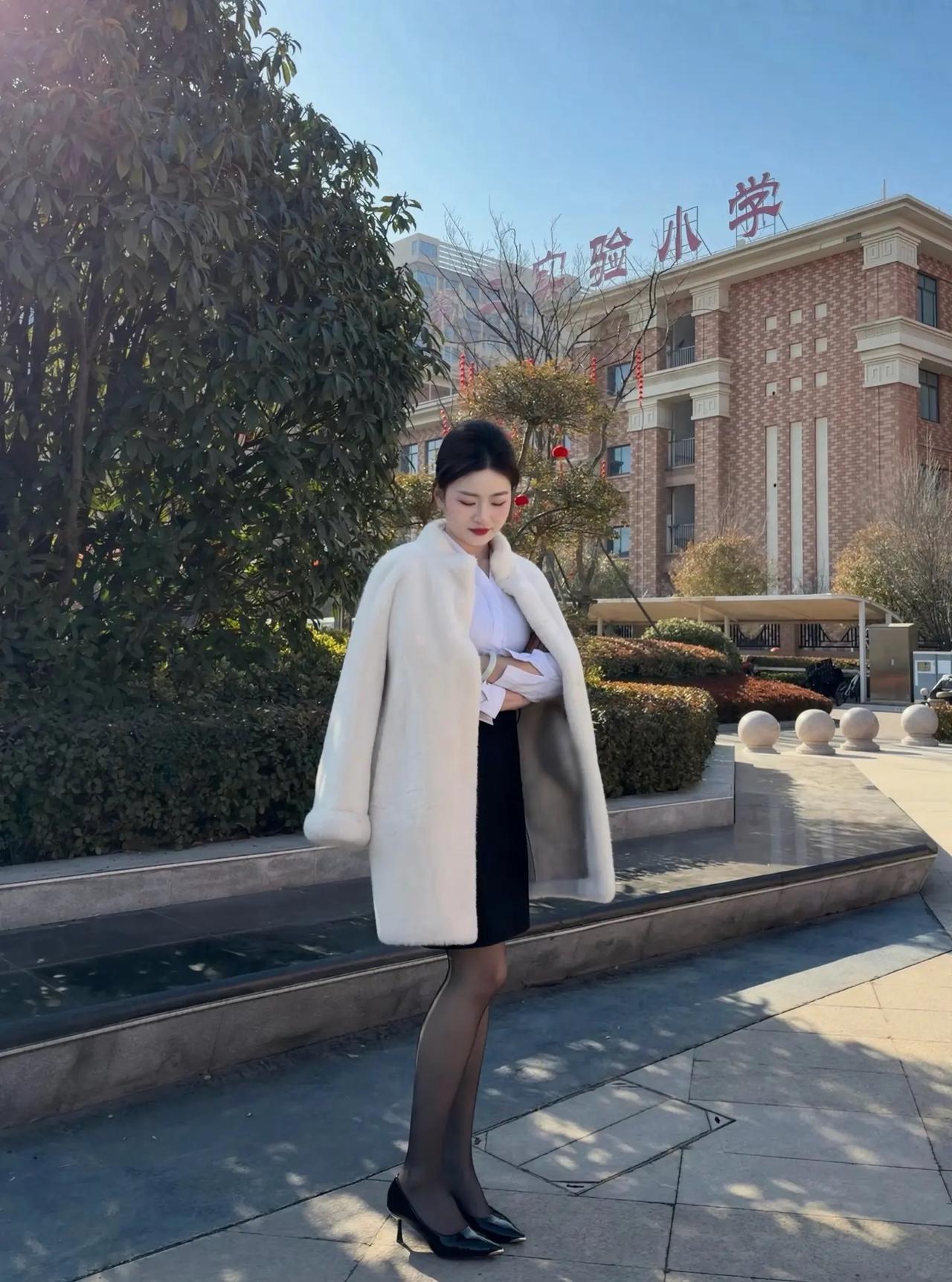 冬日穿搭指南:白色毛绒大衣+黑色连衣裙,温暖又时尚!🌟👗🧥