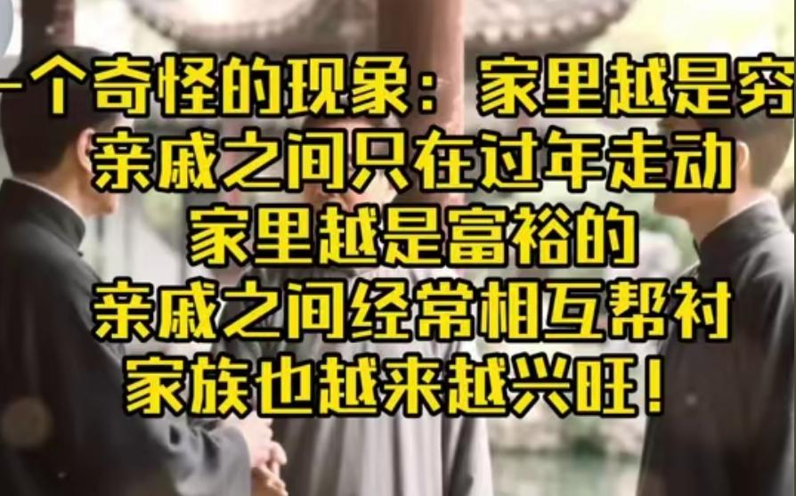 王朔说:“中国有一个怪象:家里越是穷的,亲戚之间只在过年走动;家里越是富裕的,亲戚之间经常相互帮衬,家族越来越兴旺!” 这话听着扎心但真没瞎说!北宋范仲淹早就用实际行动证明了这点,他当官后拿俸禄买了千亩田建义庄,专门接济族里的穷人,后来范氏义庄越办越大,到清朝时田产居然扩到了两万多亩 。无锡荡口的华氏家族更实在,华察辞官后直接把万亩良田分一半给贫困佃户,还焚毁田契永不收回,族里办的义庄不光管吃穿,连子弟读书、婚丧嫁娶都给资助,明清两代光靠义庄扶持考中进士的就有22人 。 穷亲戚为啥只能过年走动?真不是不想来往!古代小农经济下,一家子能把肚子填饱就不错了,唐代很多中下层官员就算考中科举,也得熬好几年“守选”才能当官,普通百姓更是连自己的徭役都扛不住,哪有多余的财力物力帮亲戚 。遇到灾年,贫家连田宅都要卖掉,甚至不得不卖儿卖女,这种情况下,除了过年凑个热闹,平时根本没能力产生实质交集 。 富裕家族的帮衬从来不是单向施舍。晋商乔家兄弟分工明确,有人管票号有人管茶庄,互相搭台把生意做遍全国;徽商胡氏家族做茶叶生意,长辈定战略,晚辈跑采购、管销售,一家人拧成一股绳 。他们的协作都有明确规矩,就像华氏义庄规定管理者必须品行端方,账目公开透明,连贪污挪用的惩罚都写得明明白白 。 这事儿的核心根本不是人情凉薄,是资源匹配的现实。你手里有粮有渠道,亲戚有手艺有人脉,互相帮衬才能形成良性循环 。就像徽商汪氏搞“联号制”,各地分号互通有无,苏州缺货杭州立马调拨,这种协作模式让家族生意越做越大 。而贫家亲戚之间,大家都处在生存线挣扎,除了情感慰藉,实在拿不出能改变现状的资源 。 有人说这是嫌贫爱富,其实是没看透本质。范仲淹的义庄初衷就是帮穷亲戚,华氏义庄连外族子弟都愿意资助上学 。真正的家族兴旺,靠的是把“帮衬”变成可持续的机制,而不是一时的怜悯 。贫困家庭不是不想帮,是没那个实力搭建这样的平台,只能把亲戚情分留在过年的寒暄里 。 各位读者你们怎么看?欢迎在评论区讨论。