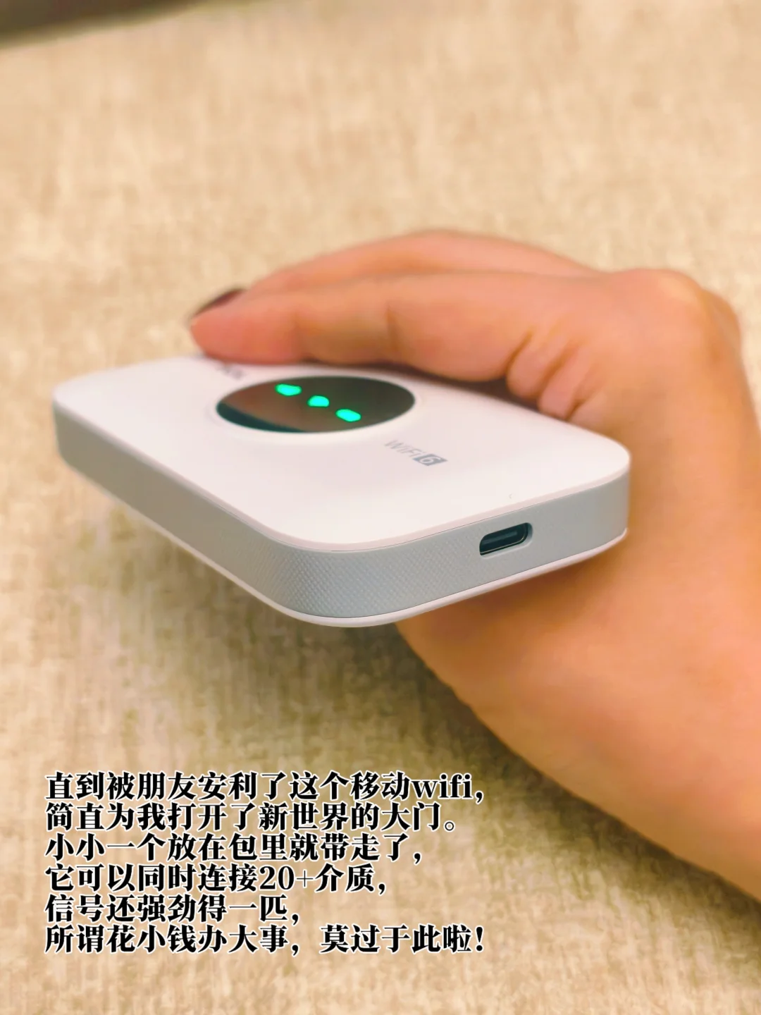 不管是我的主业还是自媒体副业,都时常会面临要在户外工作的情况,这就对网络的稳定性有比较高的要求。以前我总是习惯开手机热点连接,新号不稳定不说,流量消耗也快。直到被朋友安利了这个移动wifi,简直为我打开了新世界的大门。小小一个放在包里就带走了,它可以同时连接20+介质,信号还强劲得一匹,所谓花小钱办大事,莫过于此啦!