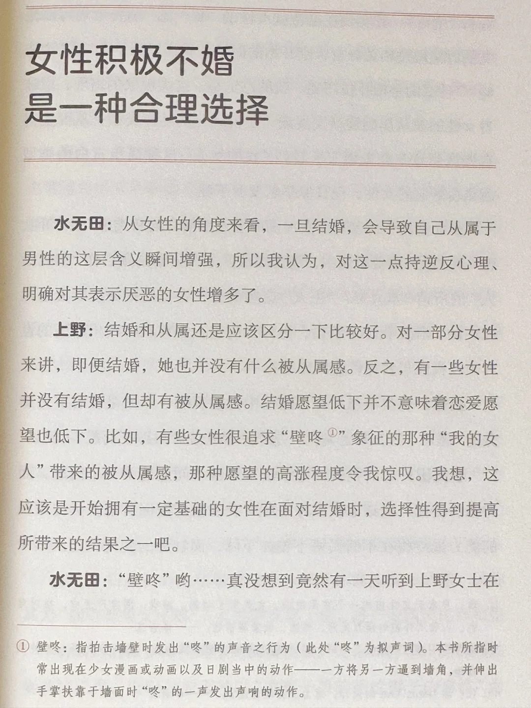 🔖这本《结婚由我》由上野千鹤子和“阴差阳错成为母亲”的社会学者水无田气流共同著成。
