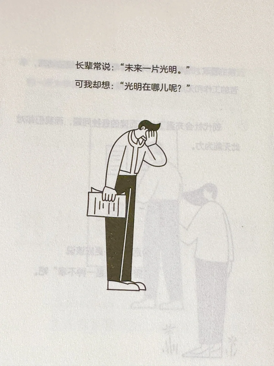 ▫️有的人对工作感到不安,就会逃避工作这个课题。其实他不是因为感到不安而逃避,而是为了逃避才感到不安。绝望正是不安的终点,是什么都不做的借口。因此,我们所能做的,就是不转移目光,勇敢地面对当下发生的一切,不安终究会减轻的。