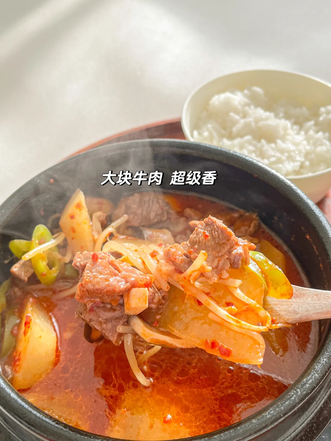 自己在家做必须放满满的牛肉,吃起来全是肉的辣牛肉汤太爽了~再配上超级入味的萝卜和爽口的豆芽,一口肉一口汤拌着饭,冬天的幸福就是这么简单