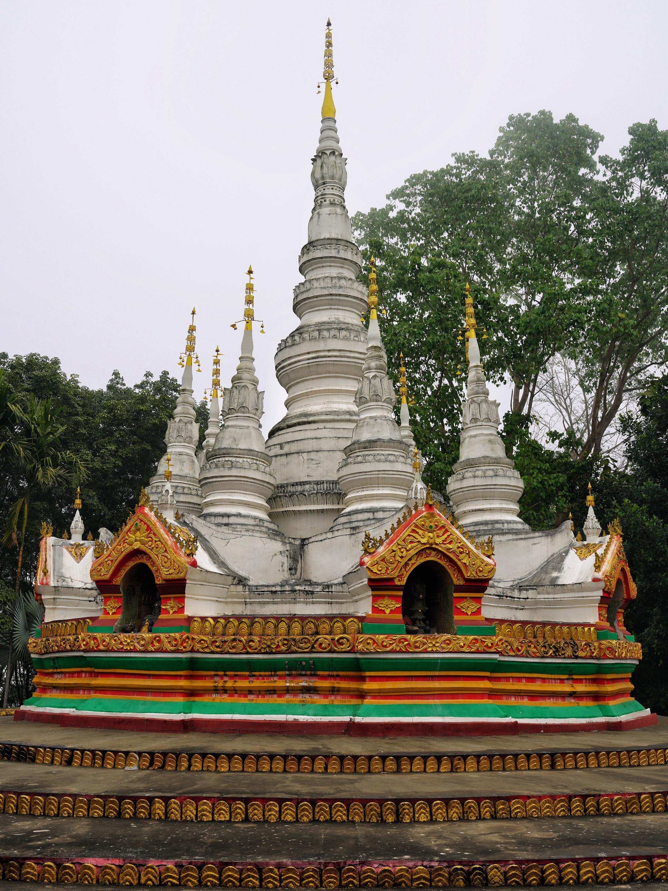 始建于乾隆年间,印度高僧所设计,由一座主塔和八座小塔组成,典型的金刚宝座塔,传说白塔下有释伽牟尼的脚印,村里人说每年都有泰国,缅甸和老挝的信众前来朝拜