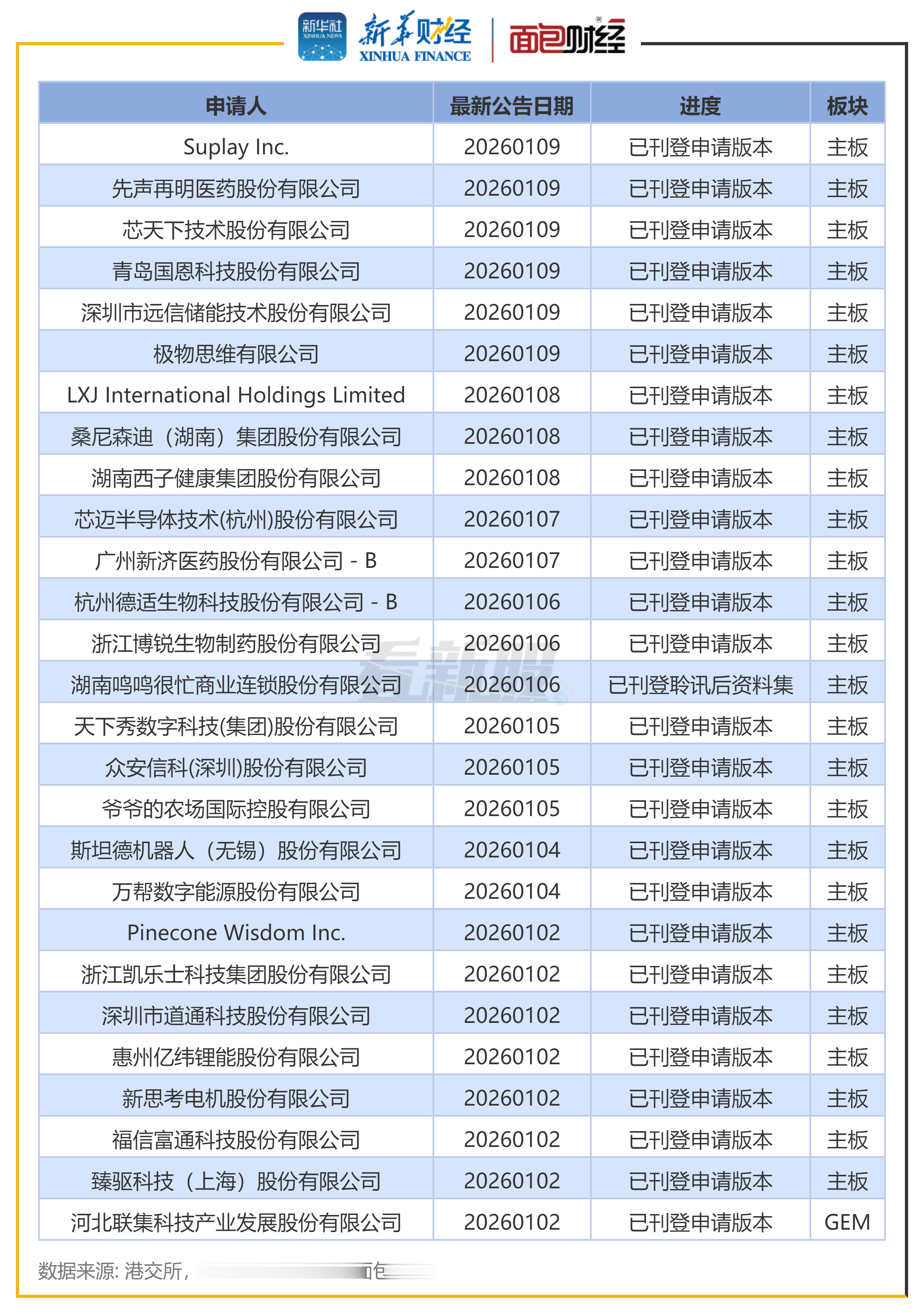 新华财经北京1月13日电新华财经和面包财经研究员根据香港交易所披露信息,对港股IPO排队及新上市企业进行了梳理统计。其中,港股IPO排队企业选取依据为审核状态为已刊登申请版本、已刊登聆讯后资料集。