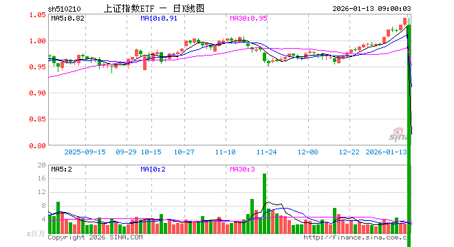1月12日,上证指数ETF(510210)涨1.26%,成交额2.91亿元。当日份额增加2100.00万份,最新份额为53.87亿份,近20个交易日份额减少7.50亿份。最新资产净值计算值为55.87亿元。
