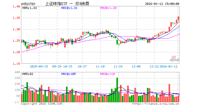 1月12日上证综指ETF(510760)份额减少1200.00万份,最新份额13.47亿份,最新规模18.16亿元