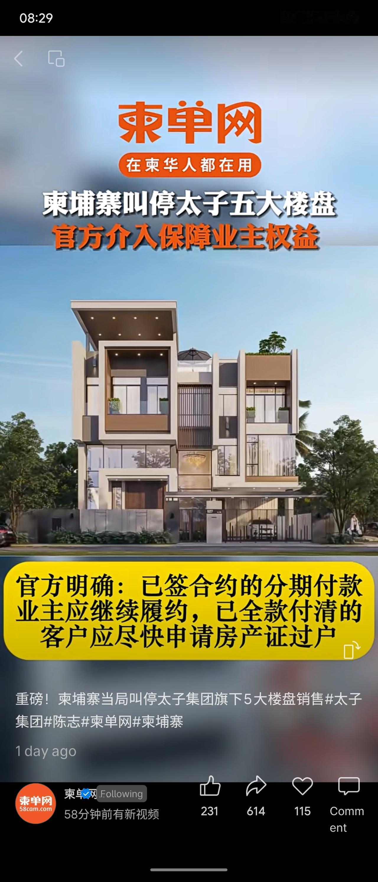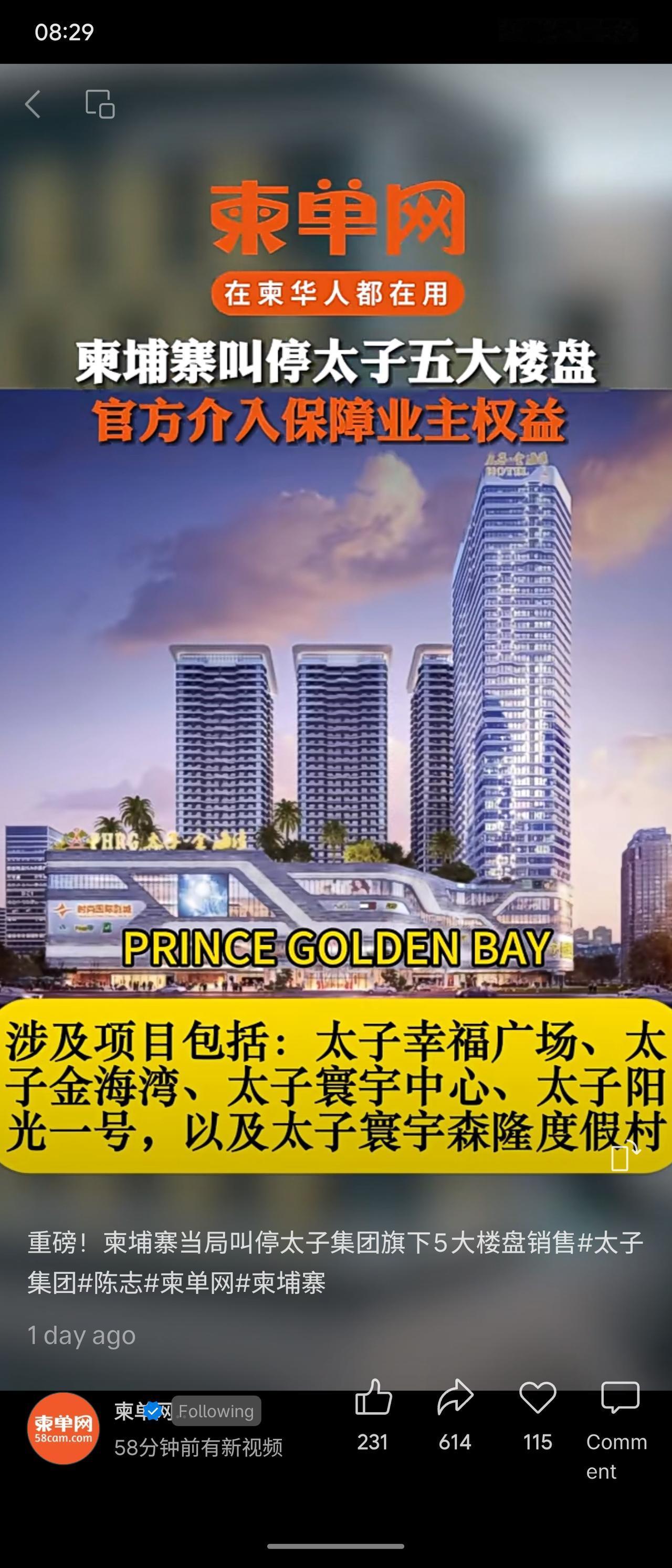 柬埔寨官方近日叫停太子集团旗下五个楼盘的销售与过户手续,包括太子幸福广场、金海湾等项目。当局介入以保障购房者权益,已分期付款业主需继续履约,全款客户应尽快申请过户,相关部门将跟进处理。
