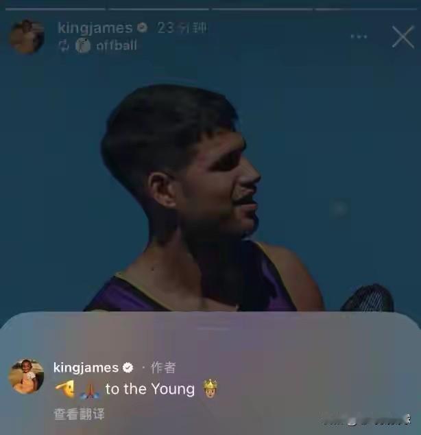 湖人超级巨星詹姆斯真是太会来事了!据悉,昨天西班牙网球巨星阿尔卡拉斯在训练中身穿詹姆斯的23号球衣,这下可把詹姆斯给激动坏了,为了表达对阿尔卡拉斯的感谢,今天詹姆斯特意更新社媒转发了阿尔卡拉斯的训练照,并写道:“🙏致年轻的🤴!” 詹姆斯不愧是一名世界级的超级巨星,他是整个体育行业的瑰宝和偶像!