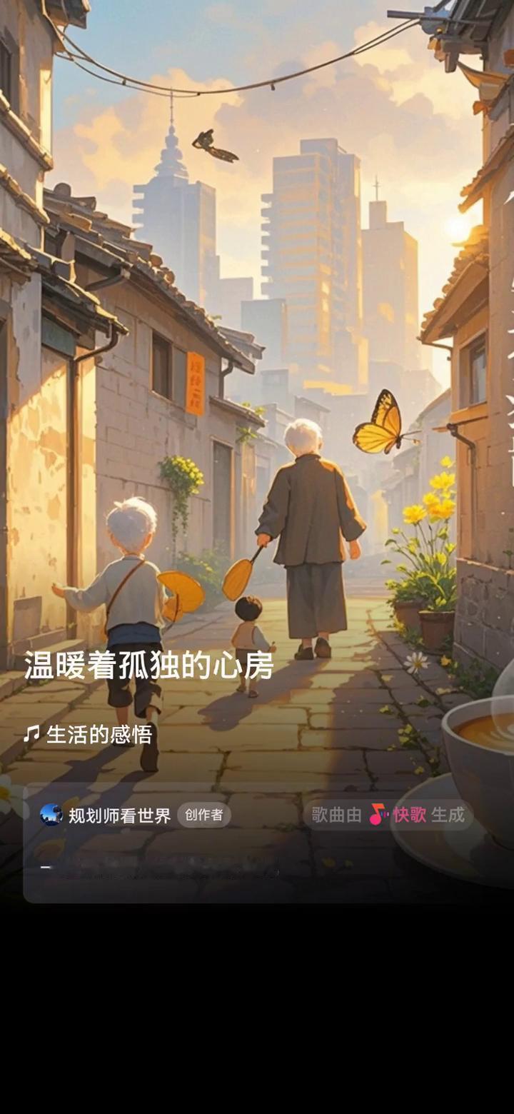 喧嚣城市风疾行,生活的感悟。 规划师看世界创作者。 歌曲由快歌生成,一起来听听我创作的歌曲吧。 别忽略了路边花开的声音,踏过的土地都藏着岁月的秘密。高楼大厦里时光流水去,别忘了为何而奔袭。生活感悟时光的温度,街角咖啡香弥漫着小幸福。清浅日子心安抚,清晨阳光洒在斑驳老旧的小巷。老人摇着蒲扇欣赏孩子嬉笑玩闹,平凡的日常也有着别样的暖光。平凡的心动也有生命馈赠的果糖。田间的蛙鸣声里夜空的繁星在闪,提醒着有颜色的生活。 不慌不忙走过四季,在静好时光里自己安放。呼吸是对生活的礼赞,平凡简单的生活,有不期而遇的温柔,像雨后彩虹出现在眼眸,给心灵一场浪漫的邂逅,生生不息的希望在心头。如春天破土的幼苗,无论风雨几何都勇敢地抬头,让生命在时光里尽情地奔流。 夜幕降临华灯上梦幻衣裳,街头艺人的歌声夜空中飘荡,温暖着孤独的心房。疲惫的夜晚过后有新的黎明在等,挫折伤痛都化作成长的节奏,在人生道路上学会去承受。慢下脚步去聆听世界,每一个声音都有它情节。岁月的故事是生命的重叠,简单日子里书写着章节。 平凡简单的生活,有不期而遇的温柔,像雨后彩虹出现在眼眸,给心灵一场浪漫的邂逅,生生不息的希望在心头。无论风雨几何都勇敢地抬头,让生命在时光里尽情地奔流。生活之路充满未知,要用感受绘出最美的诗,让灵魂在不赶时间中跟上步子,平凡世界里绽放成传奇。 快歌ID:193111163,更多精彩内容上快歌,快歌用音乐表达生活。