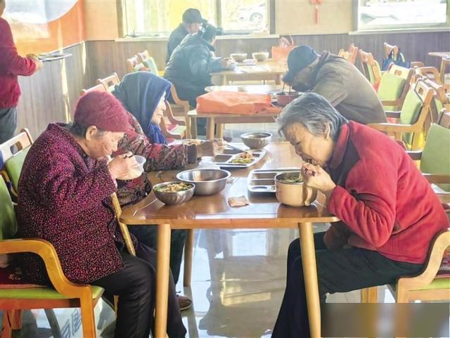 1月7日中午,肃州区西峰镇综合养老服务中心助餐点飘出阵阵饭菜香,老人们围坐桌前边吃边聊。64岁的侯家沟村6组村民马清俊说:“家中只有我一人,我每天来吃午饭和晚饭,这里环境好、服务好,吃得爽口。”