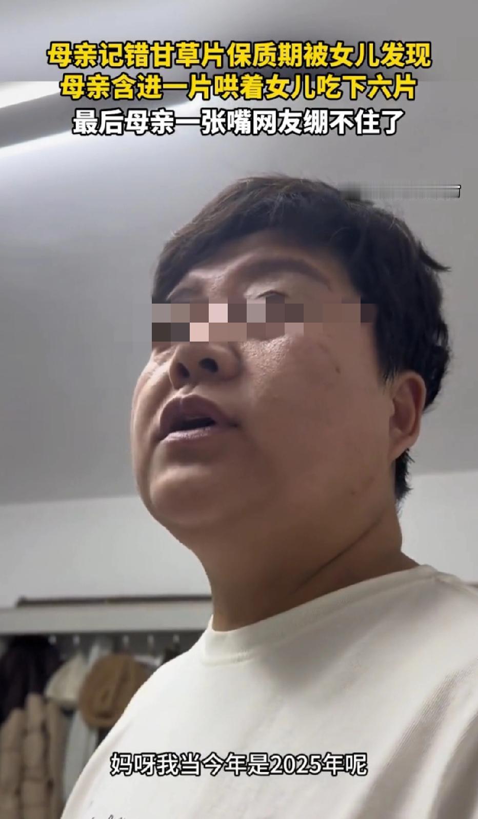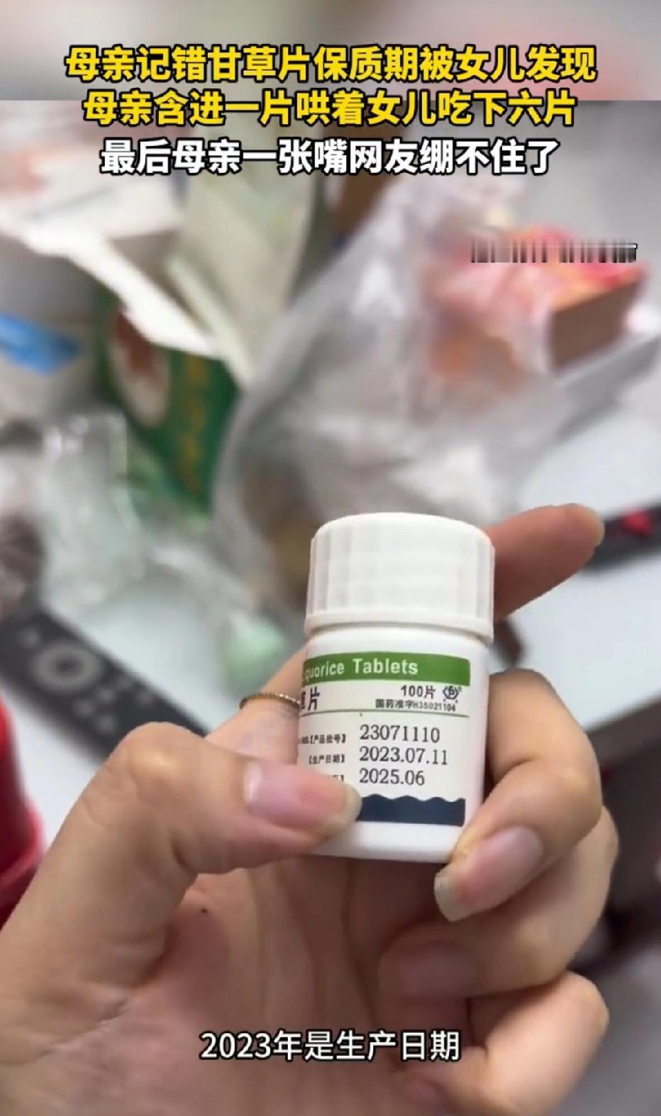 近日黑龙江哈尔滨,一母亲记错药片生产日期,吃了1片过期的药,还哄女儿吃了6片,等女儿吃下后,母亲竟然这样! 母亲记错药的的生产日期,女儿提醒她后,她反倒说没事,可以吃,拿起来就吃了一片到嘴里,然后还倒了6片出来给女儿吃,等女儿吃下后,母亲竟然把嘴里的药片给吐了出来,还表示自己可怕死,不能瞎吃,哈哈!女儿反被母亲给耍了!
