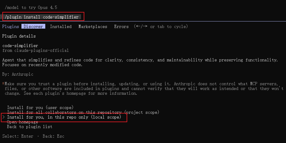 第一步,先把插件装上,体验一下code-simplifier重构代码的能力。