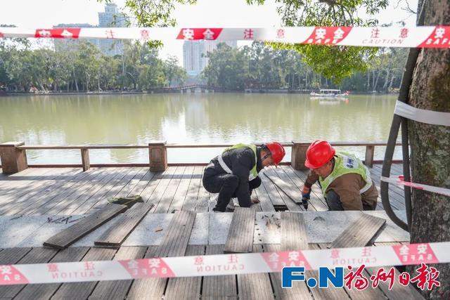 此次修缮工程还包含民生温度。环湖木栈道上此前设有23张座椅,其中部分座椅已经老旧。最受亲子家庭欢迎的秋千椅,仅设在北湖岛附近的栈道上。施工方计划在不影响通行的前提下,新增31组座椅和秋千椅,覆盖所有路段。新增设施将于春节前全部安装到位。