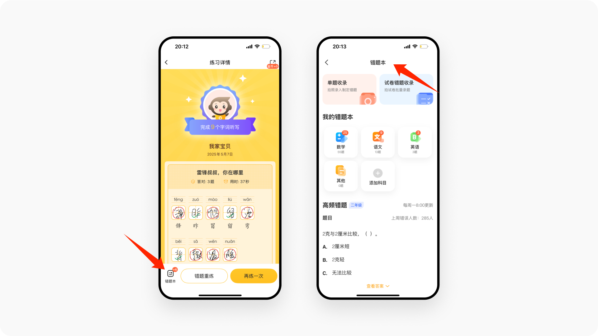 可视化成长反馈:不同题型搭配进度条、动画与吉祥物反馈,增强学习的沉浸感。